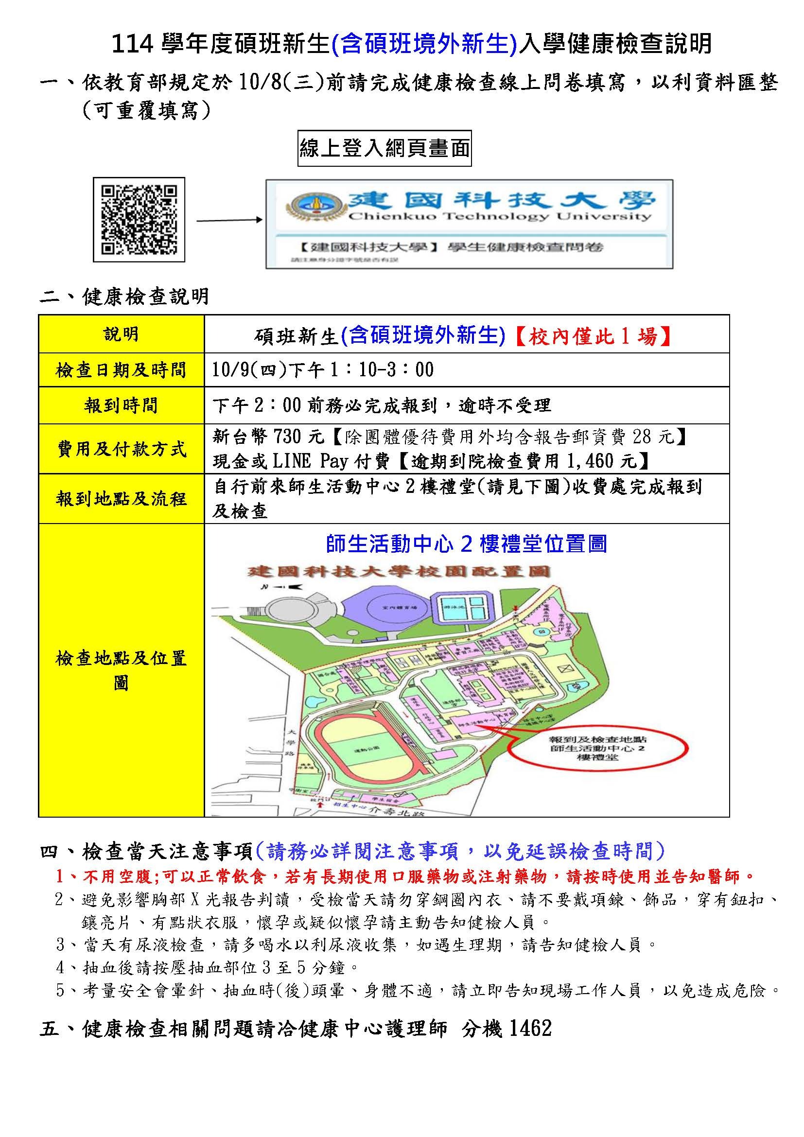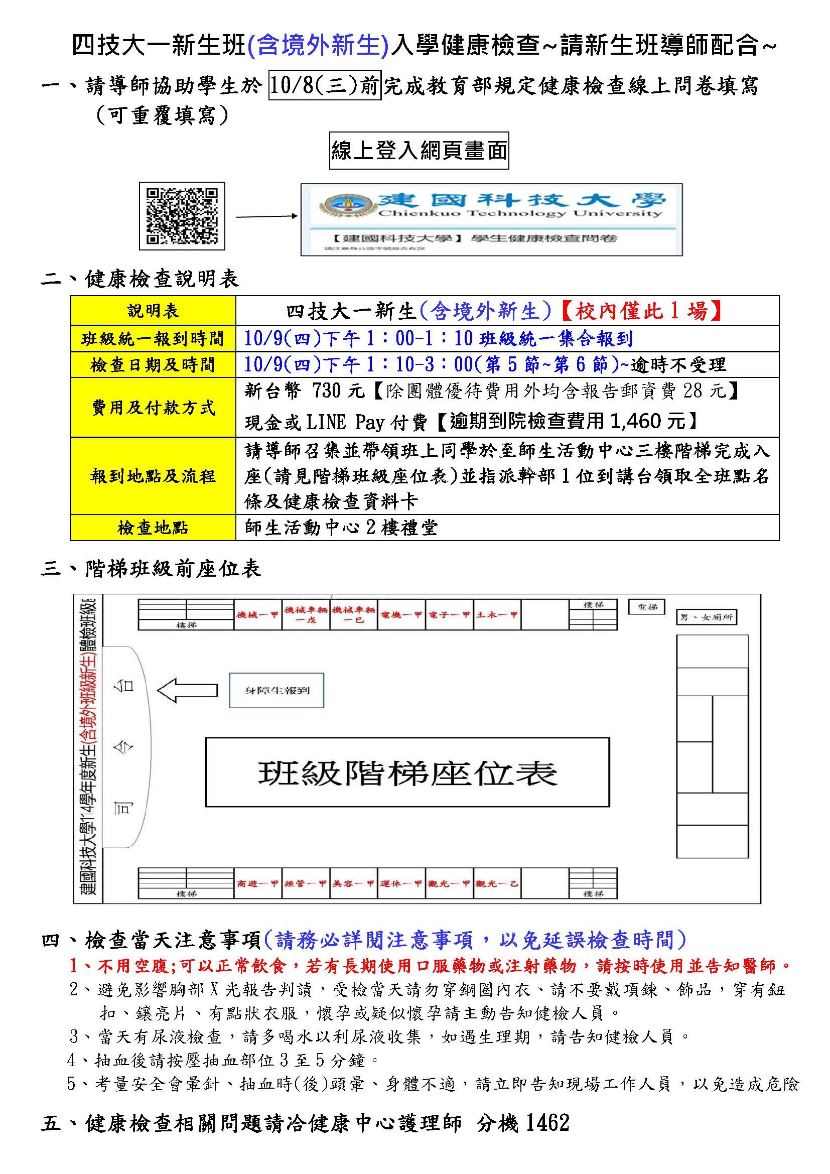(三)若有新生入健康檢查問題請來電分機1462諮詢
